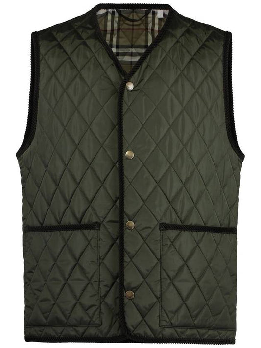 Burberry V neck quilted vest green