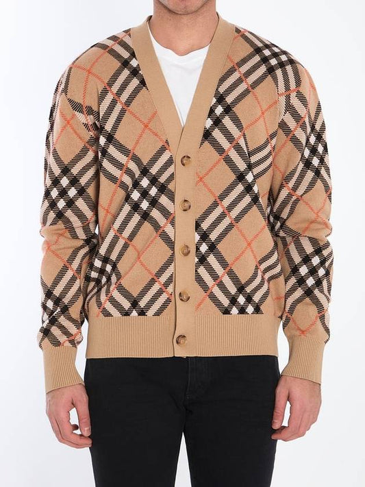 Burberry Check Wool Mohair Blend Cardigan Sand