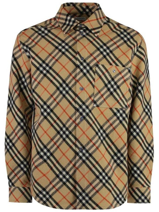 Burberry Check Oversized Wool Long Sleeve Shirt Sand