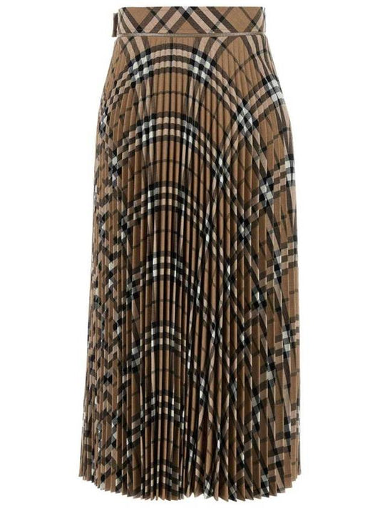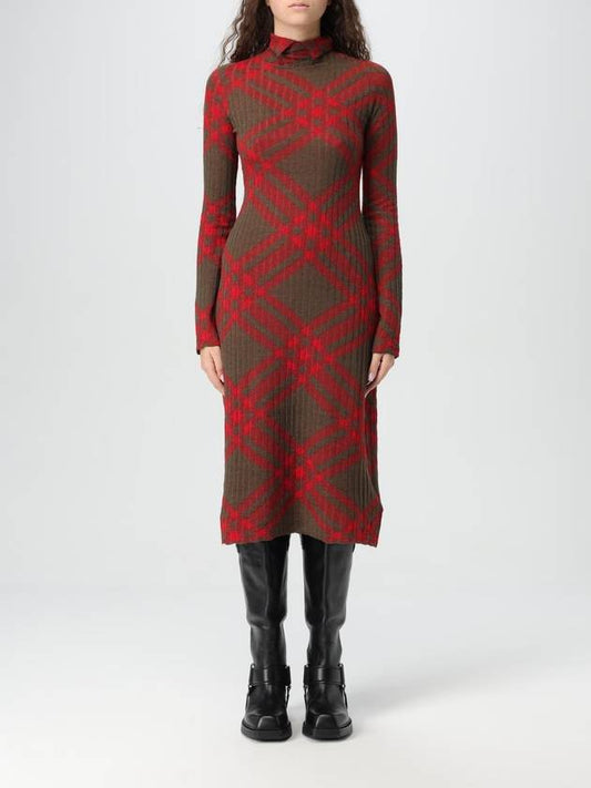 Burberry Check Turtleneck Wool Blend Midi Dress Brown Red