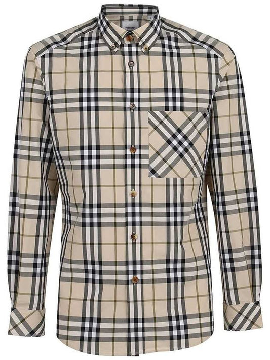 Burberry Men's Poplin Check Long Sleeve Shirt Ivory Black