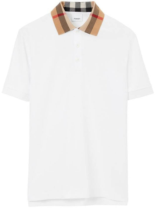Burberry Men's Check Collar Cotton Polo Shirt White