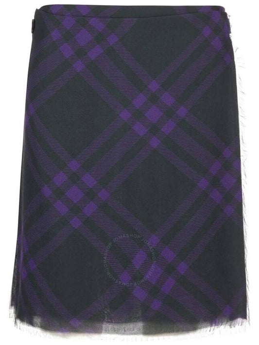 Burberry Check Silk Kilt Pleated A-Line Skirt Royal