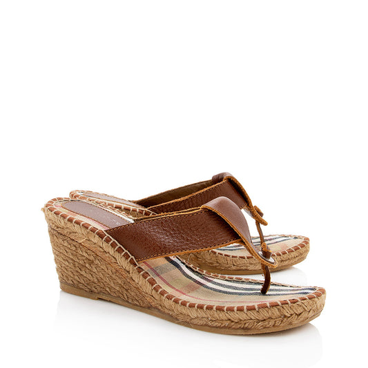 Burberry Leather Printed Wedge Thong Sandals - Size 9 / 39 (SHF-18129)