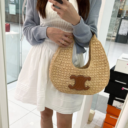 Celine Classic Panier Hobo Bag in Raffia and Calfskin