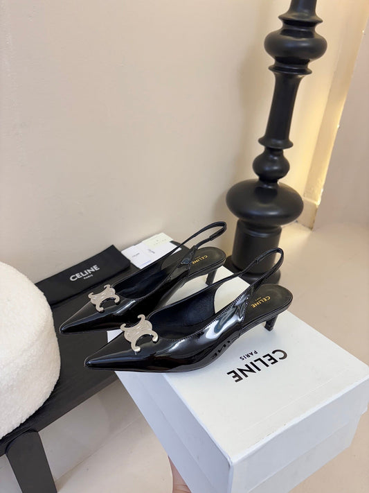 Celine CELINE Alma Triomphe Slingback Black Patent Calfskin 235705