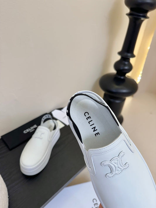 Celine CELINE Block Wedge Mule White Calfskin 235721