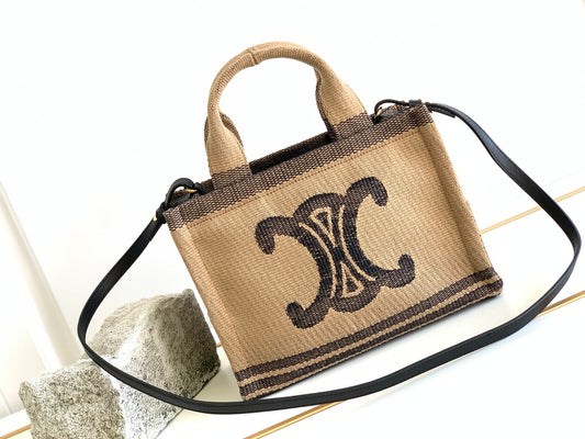Celine small cabas thais 27cm bown black fabric triomphe embroidery