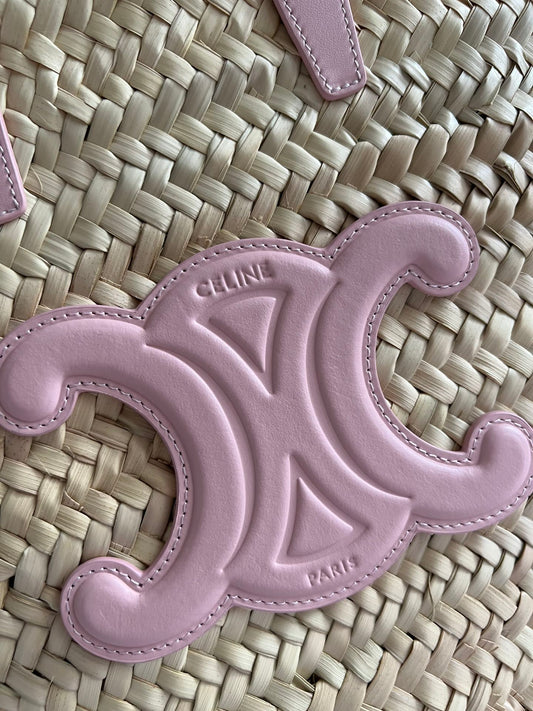 Celine medium classic panier 25cm raffia and dark pink calfskin