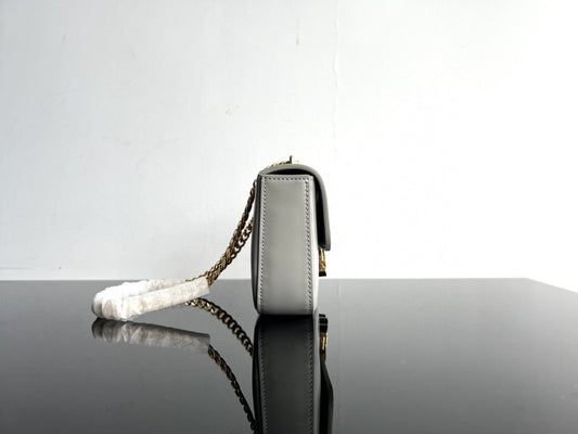 Celine TRIPHOME 20 WHITE COWHIDE LEATHER CHAIN STRAP BAG