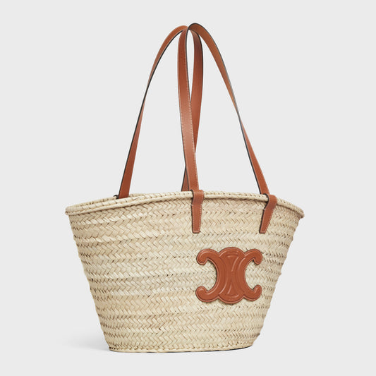 Teen Celine Classic Panier In Palm Leaves And Calfskin