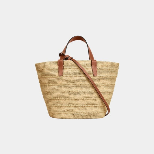 Medium Celine Classic Panier In Palm Leaves And Calfskin