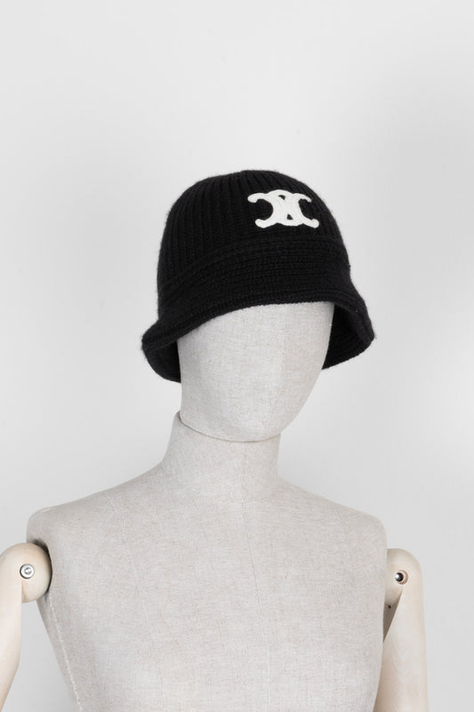 CELINE Triomphe Knit Bucket Hat Black Cashmere