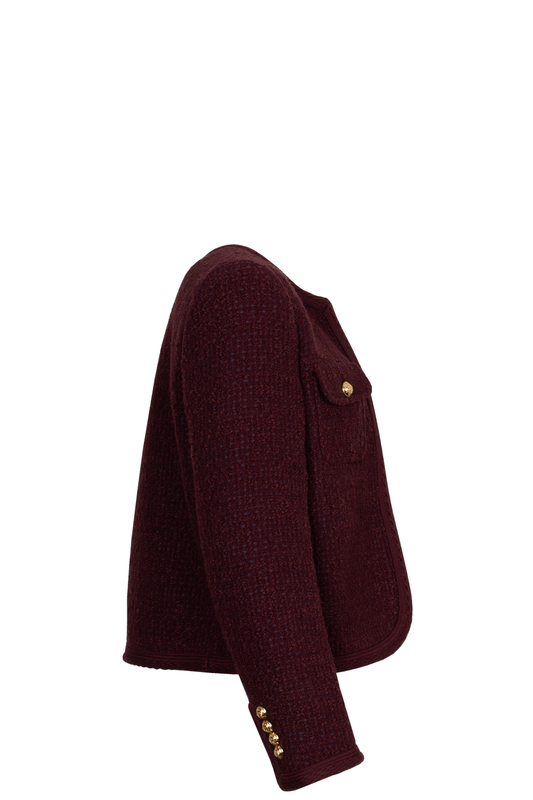 CELINE Patch Pocket Boucle Blazer Jacket Burgundy