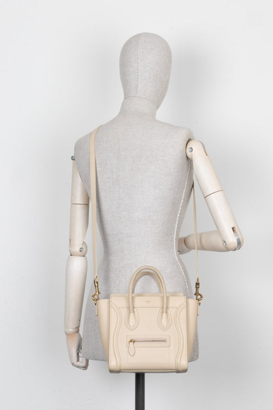 CELINE Nano Luggage Crossbody Bag Ivory