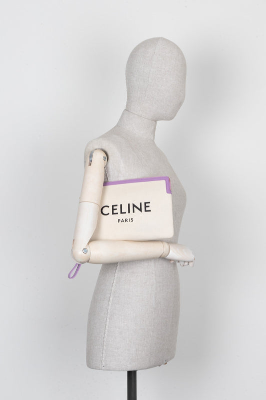 CELINE Logo Zip Pouch Cream Canvas