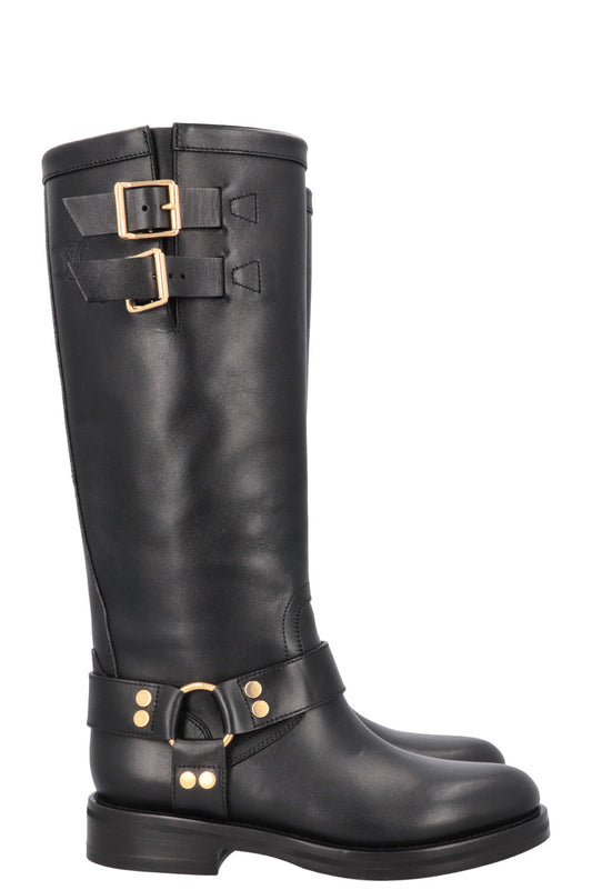 CELINE Knee High Buckled Biker Boots Black