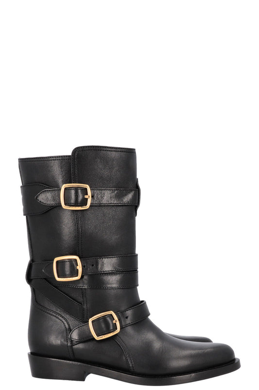 CELINE Buckled Plateau Moto Boots Black