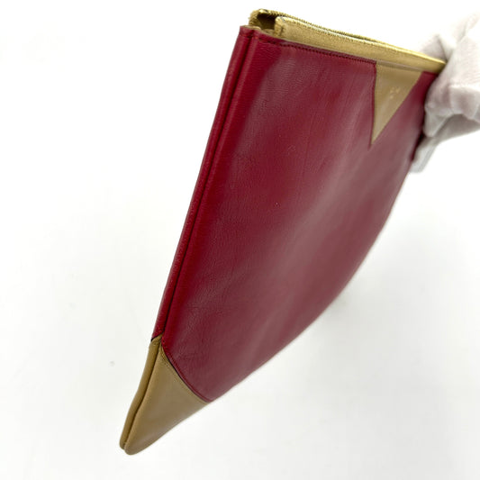Celine Bi Color Large Coeur Red Beige Leather Clutch