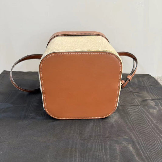 Celine Triomphe Canvas Tan Leather Small Bucket Bag