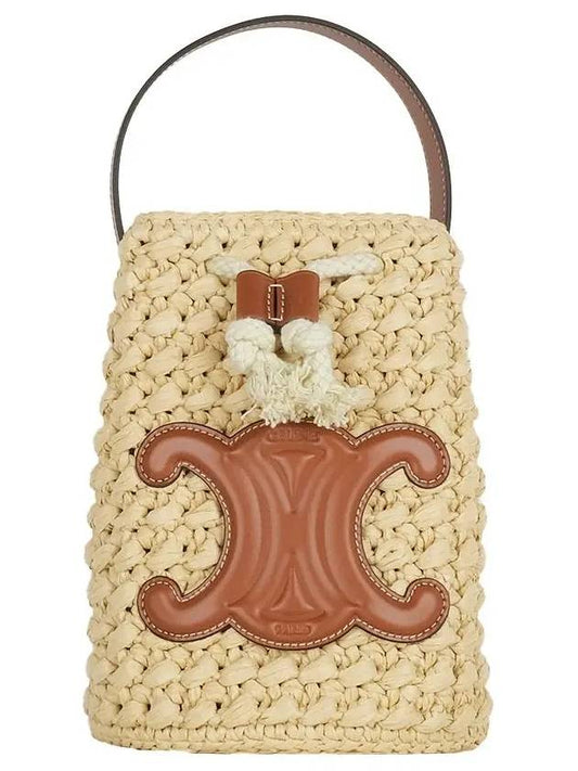 CELINE Teen Drawstring Raffia Calfskin Bucket Bag Natural Tan