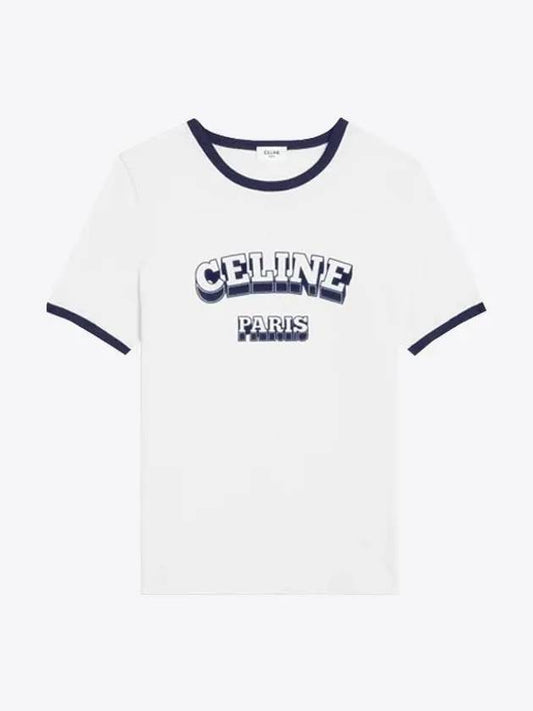 CELINE Paris 70s Logo Cotton Jersey Short Sleeve T shirt White