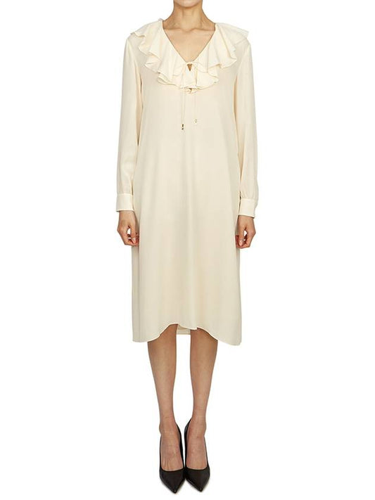 CELINE Jabot Lightweight Silk Sable Midi Dress Cream