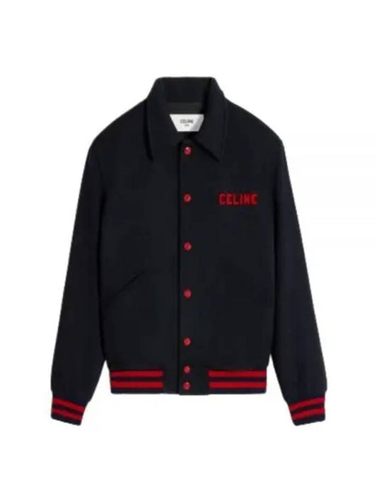 CELINE Paris Teddy Jacket in Textured Wool Navy