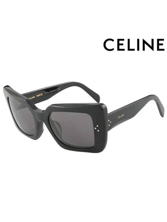 CELINE Eyewear Logo Square Acetate Sunglasses Grey Black
