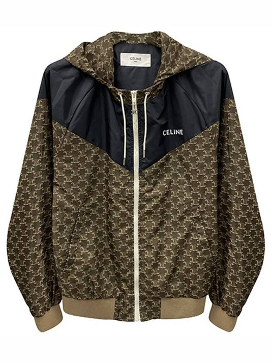 CELINE Men's Monogram Nylon Hooded Jacket Beige Black