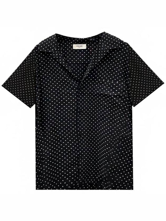 CELINE All Over Logo Hawaiian Silk Short Sleeve Shirt Black