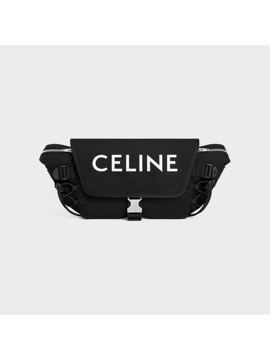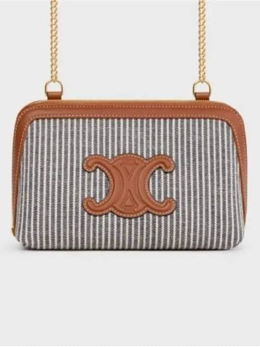 CELINE Cuir Triomphe Striped Textile Calfskin Chain Cluth Bag Navy Blue