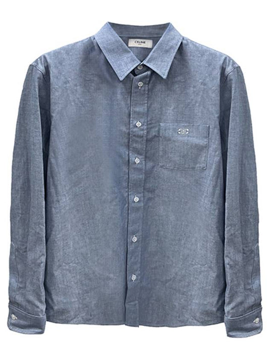 CELINE Rouge Light Chambray Cotton Long Sleeve Shirt Blue