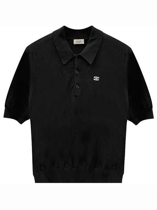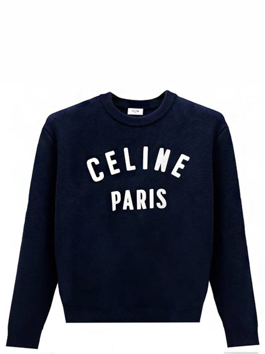 CELINE Logo Print Crew Neck Cotton Knit Top Navy