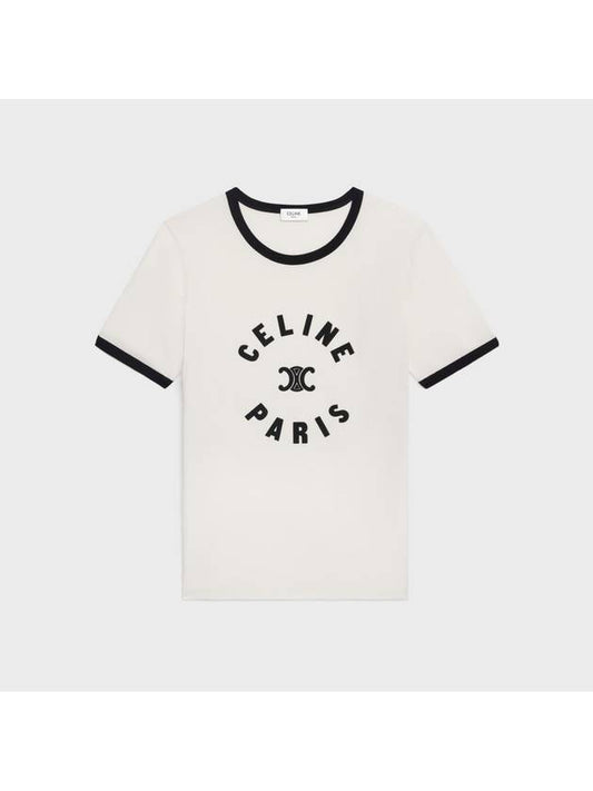 CELINE Flocking Logo Cotton Short Sleeve T-Shirt Cream