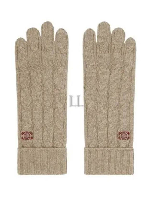 CELINE Triomphe Cable Knit Cashmere Gloves Light Taupe