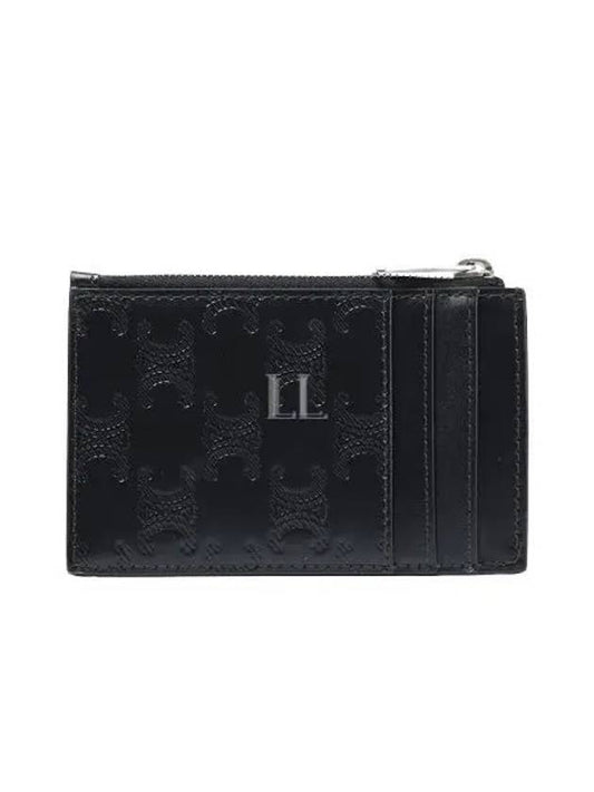 CELINE Zipper Calfskin Triomphe Embossed Card Wallet Black