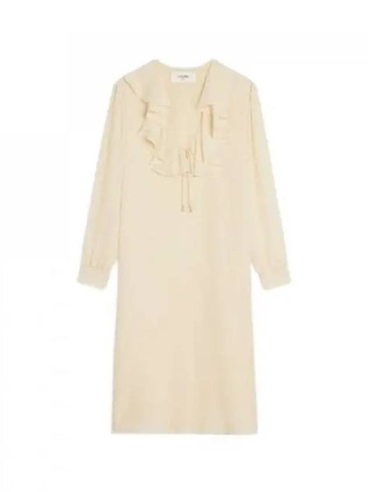 CELINE Jabot Lightweight Silk Sable Midi Dress Cream