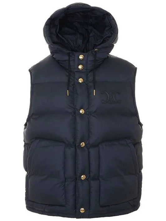 CELINE Triomphe Patch Hooded Down Vest Light Navy