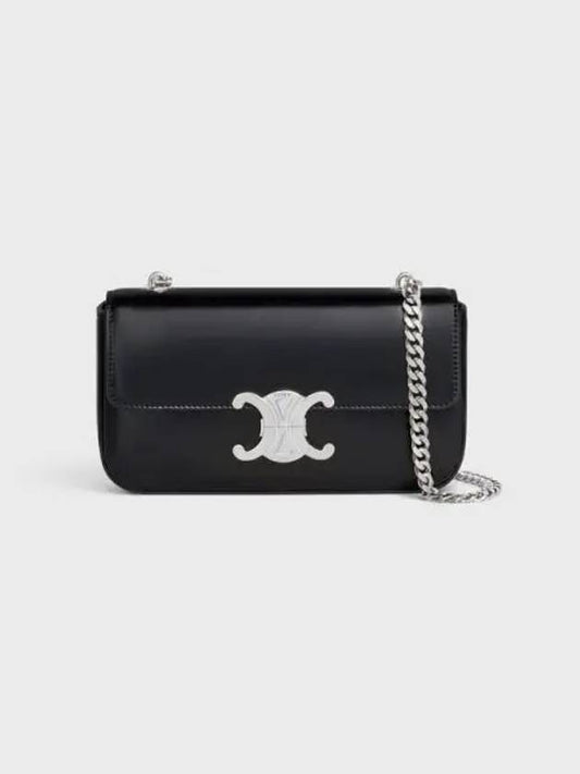 CELINE Triomphe Shiny Calfskin Chain Shoulder Bag Black