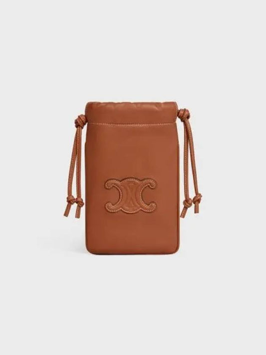 CELINE Coeur Triomphe Smooth Lambskin Drawstring Phone Tan