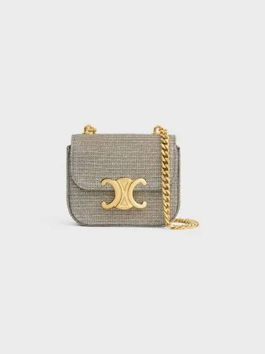 CELINE Mini Chain Claude Glitter Textile Shoulder Bag Gold