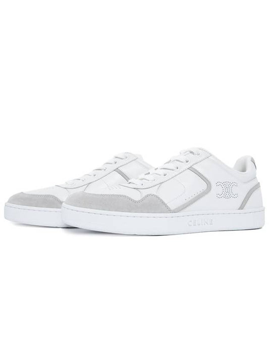 CELINE CT 10 Trainer Lace Up Suede Calfskin Low Top Sneakers White