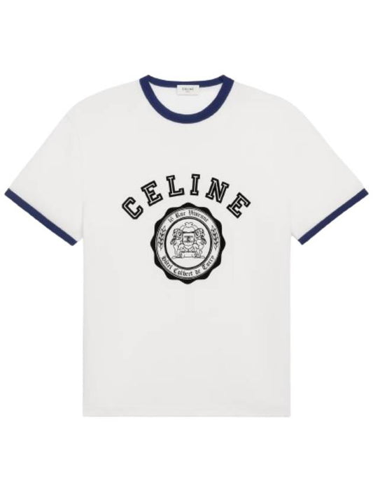 CELINE Blason Loose Cotton Jersey Short Sleeve T-Shirt Off White