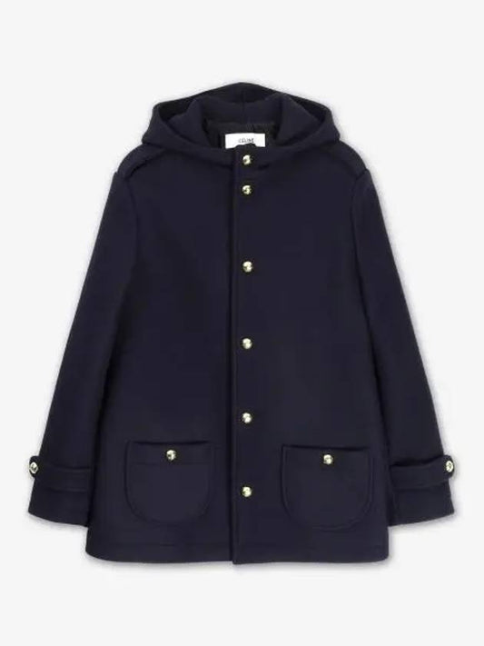CELINE Triomphe Hooded Wool Single Coat Navy