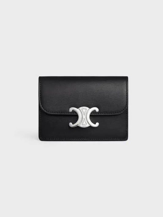 CELINE Triomphe Shiny Calfskin Flap Card Wallet Silver Black