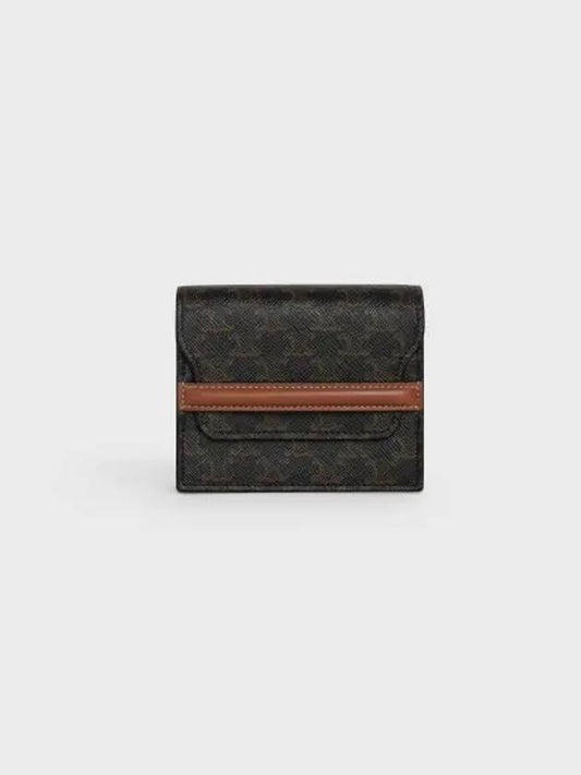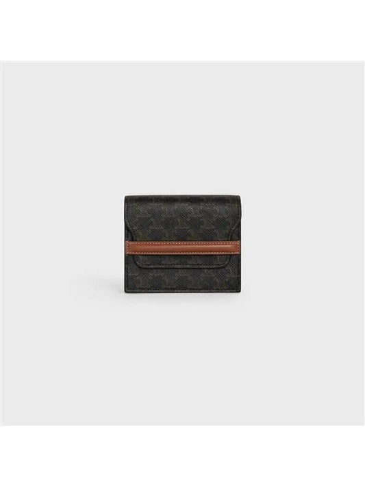 CELINE Triomphe Canvas Strap Business Card Half Wallet Tan