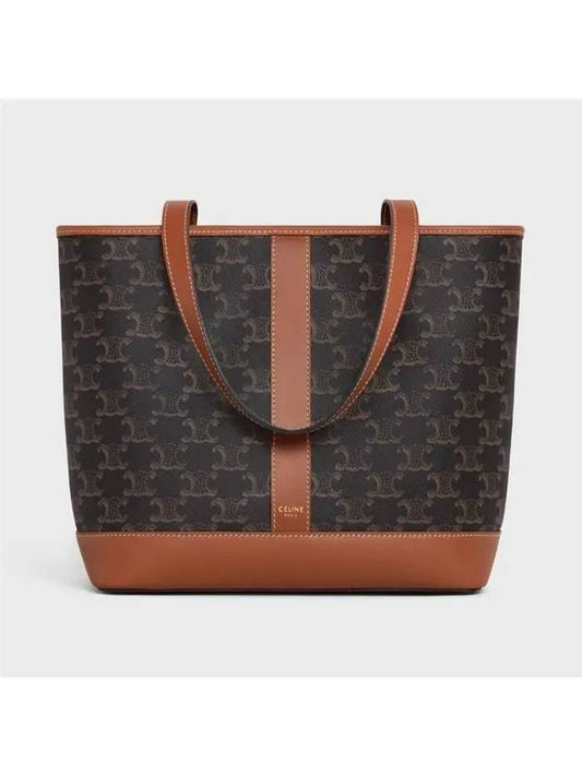 CELINE Triomphe Canvas Calfskin Tote Bag Brown Black