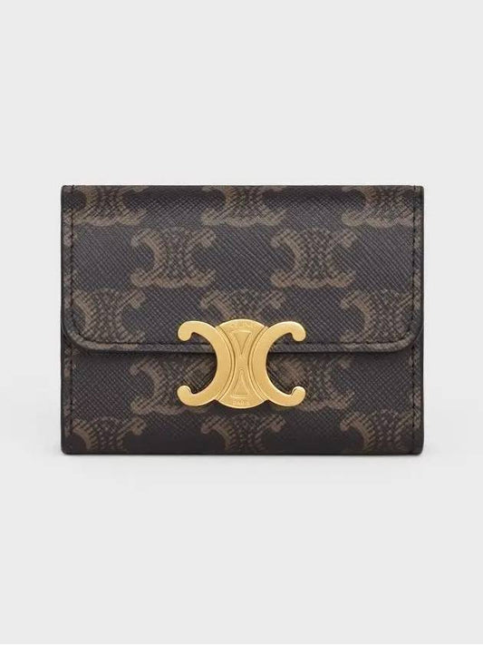 CELINE Triomphe Compact Coin Card Wallet Tan