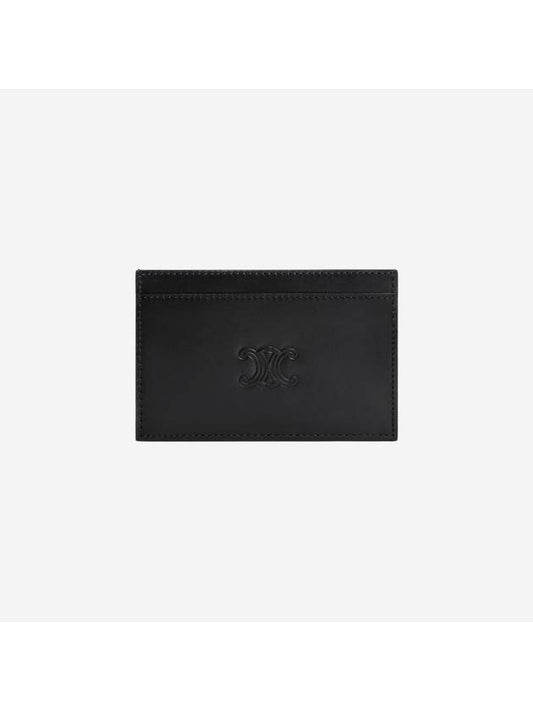 CELINE Satinated Triomphe Embossed Calfskin Card Wallet Black